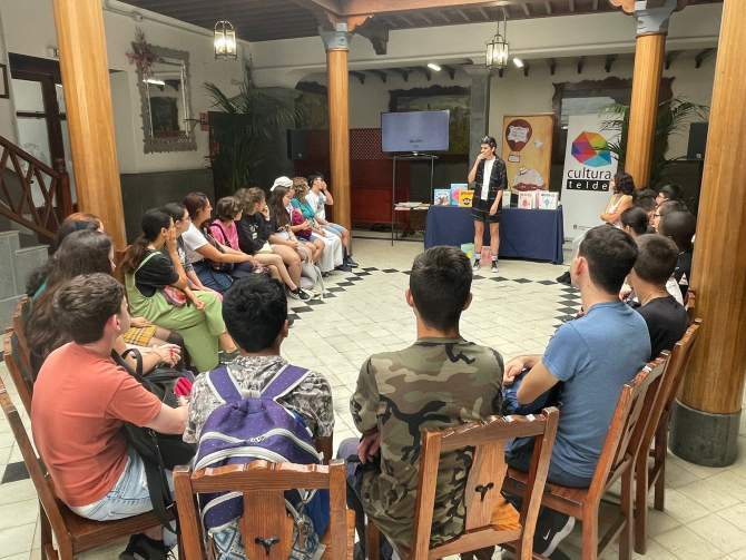 El evento, organizado por la Concejalía de Cultura y la empresa pública Gestel, acogió durante la jornada verspertina presentaciones de libros que comenzaron a las 17.00 horas con Pilar Ramos y su obra "Irina y Gara en Risco Caído y las montañas mágicas" en las Casas Consistoriales. Seguidamente, Álex Falcón dio a conocer "Vendedores de humo y otros oficios olvidados", mientras que Rayco Cruz, de la editorial Fundación, disertó sobre "Levei y Tiempo de leyendas" a las 19.00 horas.