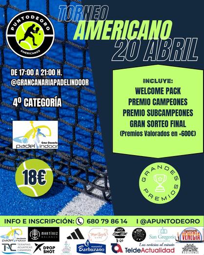 Este sábado, el club Gran Canaria Pádel Indoor en Jinámar fue el escenario de la novena edición del torneo americano Punto de Oro, un evento que culminó con gran éxito y demostró el alto nivel y la intensa competencia entre los participantes. Con un total de 16 jugadores en liza, el torneo ofreció una tarde llena de deportividad y emocionantes encuentros de pádel.