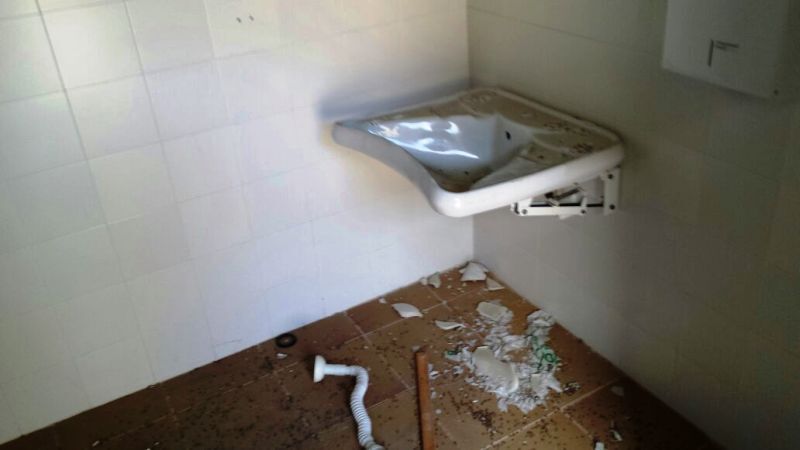 Los destrozos son evidentes: aseos rotos, puertas y ventanas destrozadas, y una acumulación de basura que ensombrece su dignidad histórica. La carpintería metálica y otros elementos constructivos también muestran un deterioro avanzado por la falta de mantenimiento y vigilancia. Según denuncian los vecinos, que prefieren mantener el anonimato por haber accedido al lugar para evaluar su estado, el sitio ha sido objeto de vandalismo reiterado, incluyendo un atentado en 2014 que destrozó paneles y aseos, tal y como informó TELDEACTUALIDAD.