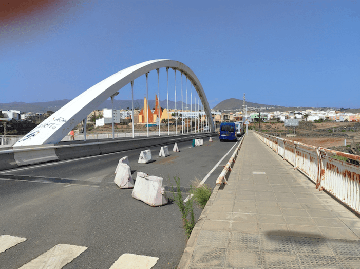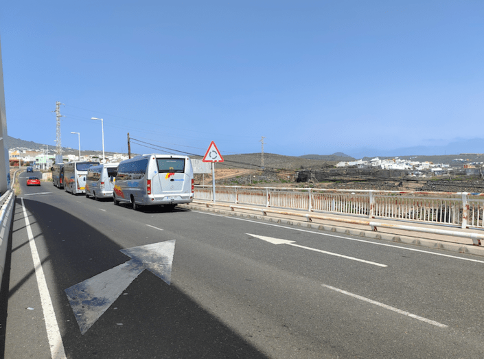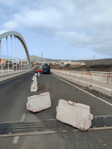 Usuarios del viaducto que conecta el casco de Telde con el barrio de San José de Las Longueras piden al Ayuntamiento que renueve la señalética de la vía, y que además instale nuevos elementos que adviertan del peligro que supone el torreón que invade uno de los carriles, en donde recientemente una guagua tuvo un aparatoso accidente.
