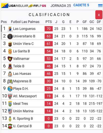 El equipo cadete A del Club Deportivo Las Longueras de Telde se ha proclamado campeón de la Liga Insular de Gran Canaria tras vencer a domicilo a Las Huesas por 1-4.
