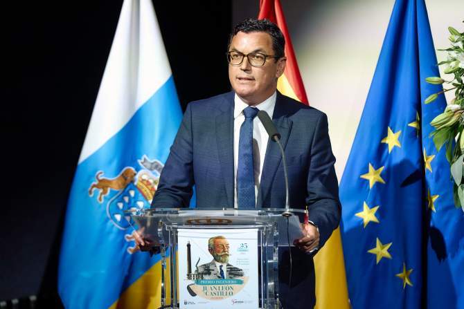 El consejero de Obras Públicas, Vivienda y Movilidad del Gobierno de Canarias, Pablo Rodríguez, ha presidido este jueves la segunda edición de los premios ingeniero Juan León y Castillo, organizados por el Colegio Oficial de Ingenieros de Caminos, Canales y Puertos de la Demarcación de Las Palmas, en colaboración con el Gobierno de Canarias, para destacar la labor de los ingenieros e ingenieras de caminos, canales y puertos y las iniciativas en el ámbito de la ingeniería civil, así como social, que constituyan una referencia significativa en la comunidad autónoma.
