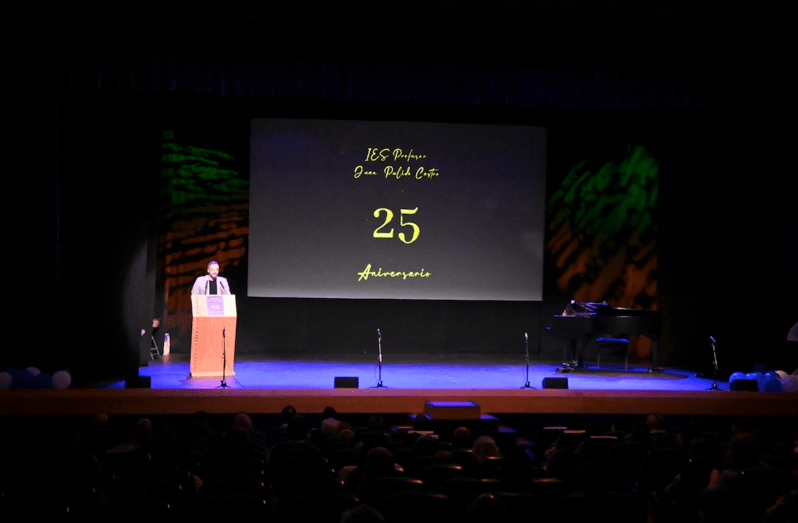 Este jueves, la comunidad educativa del IES Juan Pulido Castro se convocó en el Teatro Municipal Juan Ramón Jiménez para celebrar el 25 aniversario de su fundación. Un emotivo encuentro que convocó a docentes, alumnos y personal de servicios de todas sus etapas. Una oportunidad para intercambiar impresiones y para volverse a ver después de tantos años. En el acto participaron alumnos del centro, miembros de la Escuela Municipal de Música de Telde, la presidenta del AMPA, o los ex alumnos Horacio Colomé, actor internacional, o Juan Antonio Peña, alcalde de Telde.