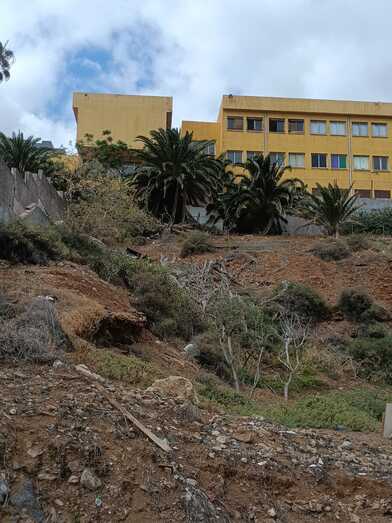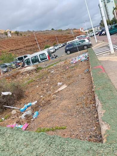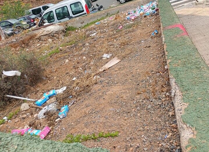 Vecinos de la calle Manuel Aléman Álamo de Jinámar denuncian la suciedad que se acumula en las zonas verdes ubicadas junto al colegio público Rafael Alberti.