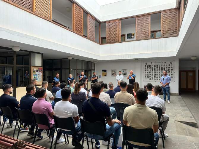 El primer edil les dio la bienvenida y compartió con junto al jefe de la Policía la planificación de las próximas semanas, entre otros asuntos, el acto de toma de posesión como funcionarios en práctica que tendrá lugar el próximo 6 de mayo en el Teatro Juan Ramón Jiménez. Será a las 20.00h. Un acto que se celebra en la ciudad 18 años después de los últimos agentes, ya que desde 2006 no se había formulado nuevas incorporaciones. En esa ocasión se incorporaron seis agentes.