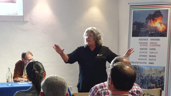 Cuestiones fundamentales como el origen de Palestina formaron parte de la exposición de la ponente, así como los interrogantes de este conflicto, asedio y violación de derechos humanos y del ordenamiento internacional por parte de Israel. También se expuso el sometimiento por parte del sionismo, durante tanto tiempo, a los territorios ocupados ilegítimamente, arrasando territorios y aniquilando a miles y miles de personas, incluido niñas y niños, destruyendo sistemáticamente sus viviendas y suelos agrícolas productivos, atrapando además al pueblo palestino -legítimo dueño de esta tierra- y obligándole a convertirse en refugiados, viviendo en campamentos en países vecinos y en su propia tierra, y para aquellos que han podido crear una comunidad Palestina en la diáspora a la espera de conseguir un territorio y estado libre para regresar.