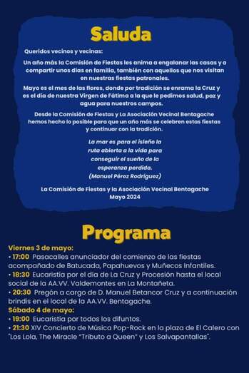 El barrio de El Calero inicia el próximo viernes sus fiestas en honor a Nuestra Señora de Fátima, que se extenderán hasta el 13 de mayo, con el pregón a cargo de Manuel Betancor Cruz a las 20.30 horas.