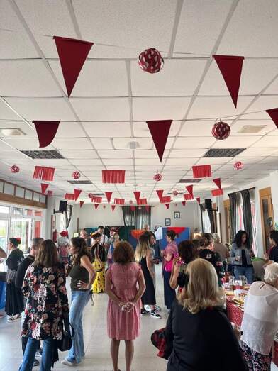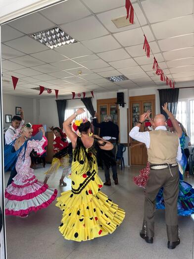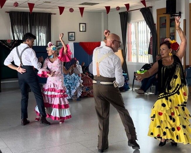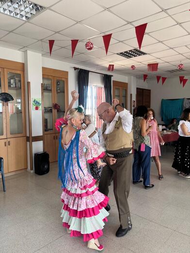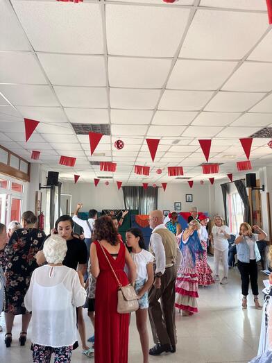 Asimismo, a lo largo de toda la jornada hubo bailes por rumbas y sevillanas en un local social decorado para la ocasión con banderines, farolillos y mantones.
