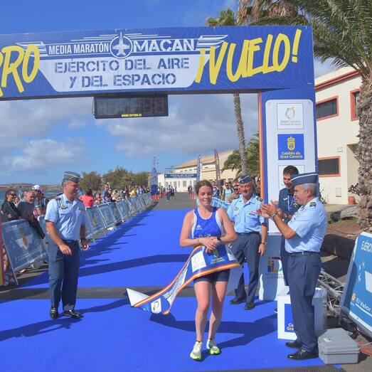 Yeray Alemán, del club Hospital Perpetuo Socorro, y Elena Salom se proclamaron en la mañana de este miércoles vencedores absolutos del XVIII Medio Maratón Macan, celebrado dentro del recinto de la Base Aérea de Gando. La salida se dio puntualmente a las 9.00 horas con buena temperatura pero con un cielo que manera esporádica repartía algunas gotas de lluvia con algo de viento, pero sin interrumpir el desarrollo de la prueba.