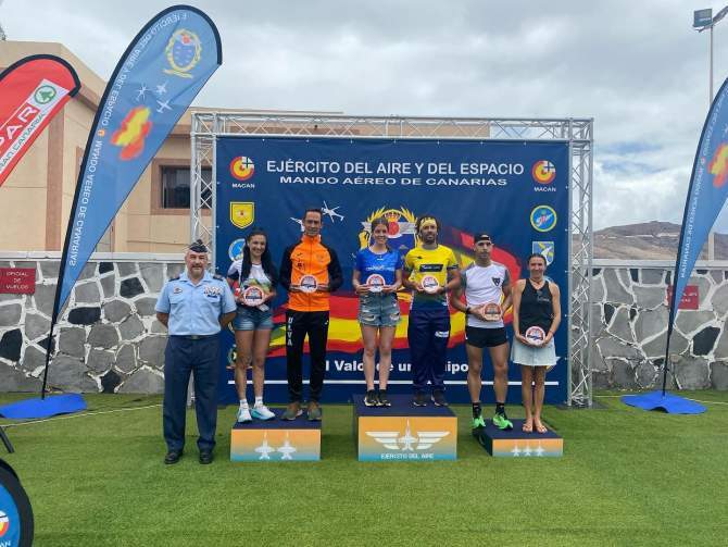 En la categoría femenina, nada que objetar al triunfo de Elena Salom, hija del mítico corredor de fondo, José Salom, que fue coronel de la Base Aérea, hoy teniente general y valedor de que esta prueba se siga celebrando en la Base Aérea. Elena Salón, controló la prueba en todos sus parciales sin que nadie le inquietase llegando a meta pletórica con un tiempode 1 horas 31 minutos 11 segundos. Entraría segunda Davinia Déniz del C.D. Boletrail de Teror con 1 h.35.54. y tercera Solange Vadillo con 1 h. 39.52-