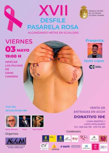 El recinto de Infecar, en la capital grancanaria, fue escenario este viernes de la decimoséptima edición del desfile Pasarela Rosa. Un pase de modelos a favor de la Asociación Canaria de Cáncer de Mama que protagonizaron catorce mujeres y un hombre -el exalcalde de Telde Francisco Santiago- afectados por la enfermedad oncológica.