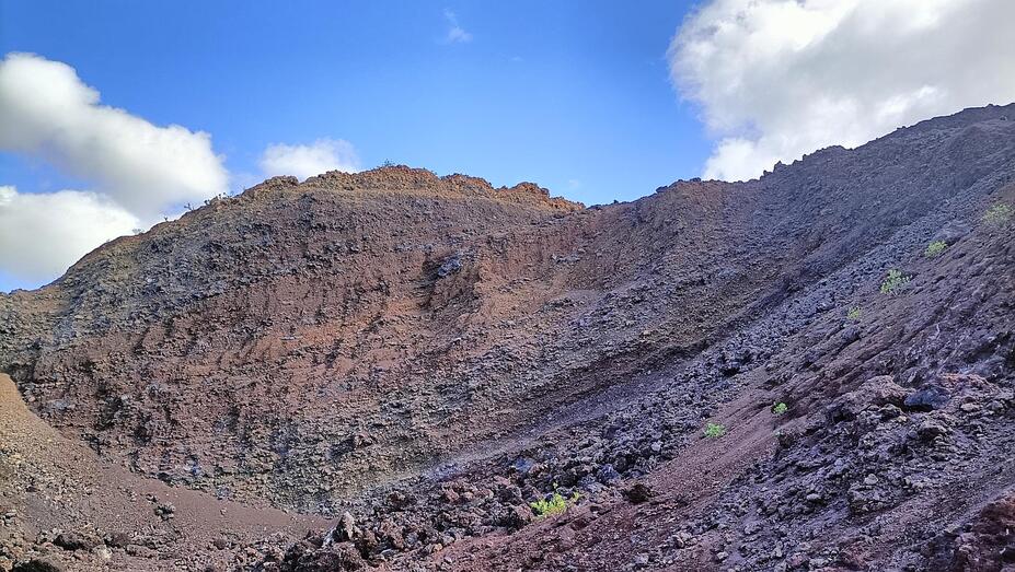 A mí no me queda otra que dar fe de cómo está ahora el volcán, sabiendo, es verdad, que cuando visitaba la zona con alumnos hace cuarenta años, el cono volcánico se encontraba prácticamente íntegro, contaba entonces con una visible e importante zona de extracción de cenizas volcánicas en la cara sur del cono, pero el resto del mismo y su cima permanecían intactos.