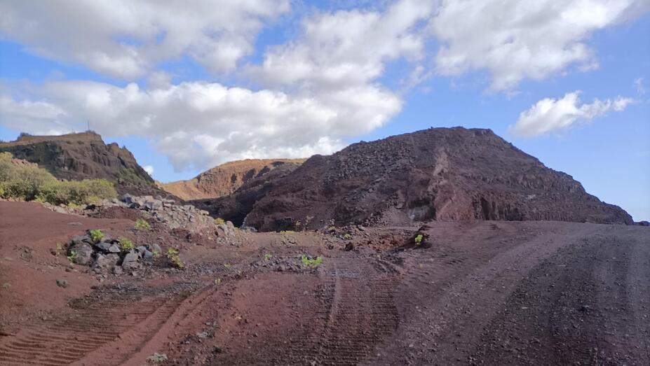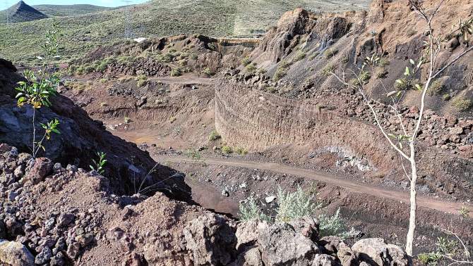 Pero también la cañada de las Haciendas, que está justo detrás del interfluvio, ha visto como sus olivos y acebuches son sepultados con las sorribas que la industria extractiva lleva a cabo, con la intención de allanar el terreno y alcanzar así nuevas zonas de picón fresco. Nos referimos a la parte baja de la ladera norte del cono volcánico de La Montañeta Fría, un cono aún sin mancillar y al que urge y mucho el reconocimiento firme y decidido por parte del Gobierno de Canarias para dotarle con una figura de protección del campo de volcanes de Rosiana en forma de espacio natural.