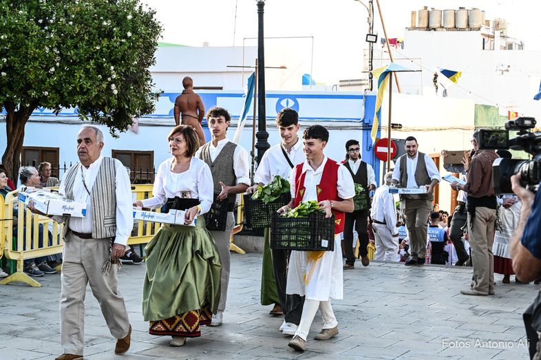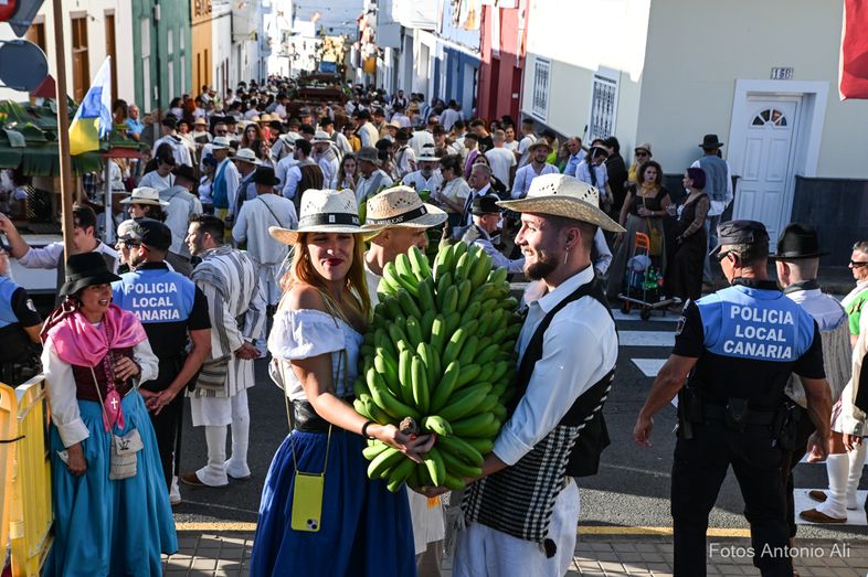 La corporación municipal, presidida por el alcalde de la ciudad, Teodoro Sosa Monzón, junto a los concejales y representantes vecinales estuvieron al frente de la romería hasta su llegada al frontis de la ermita de San Isidro, donde todo estaba dispuesto para acoger las numerosas ofrendas, principalmente provenientes de los cultivos más tradicionales, como plátanos y cebollas, y también productos no perecederos.