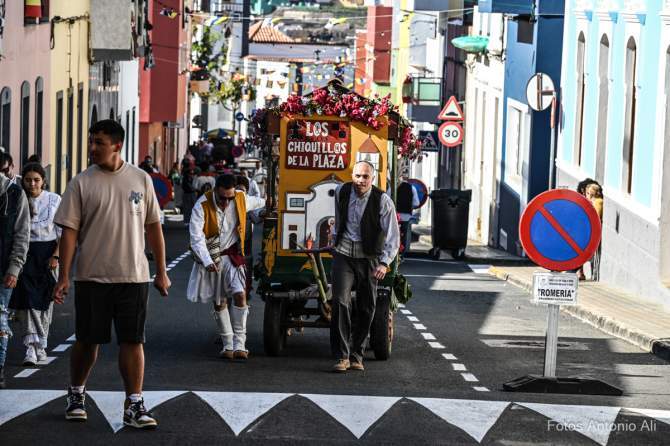 El barrio de San Isidro vivió este sábado su tradicional romería ofrenda en la que cientos de vecinos quisieron realizar su ofrenda al patrón de los agricultores y vivir una fiesta donde la exaltación de las costumbres canarias fue la principal protagonista. Ataviados con la indumentaria canaria, pequeños, jóvenes y mayores se dispusieron a realizar el recorrido junto a las trece carretas y a las agrupaciones musicales que celebraron esta romería.