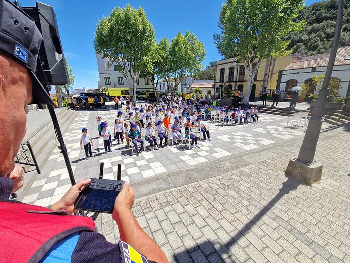 Tras la entrega de premios, en la que también se reconocieron a otros colectivos, se realizaron talleres didácticos para enseñar a los niños y niñas del colegio de Valleseco el funcionamiento y la utilidad de los drones, así como el trabajo de los bomberos forestales y las herramientas que utilizan.
