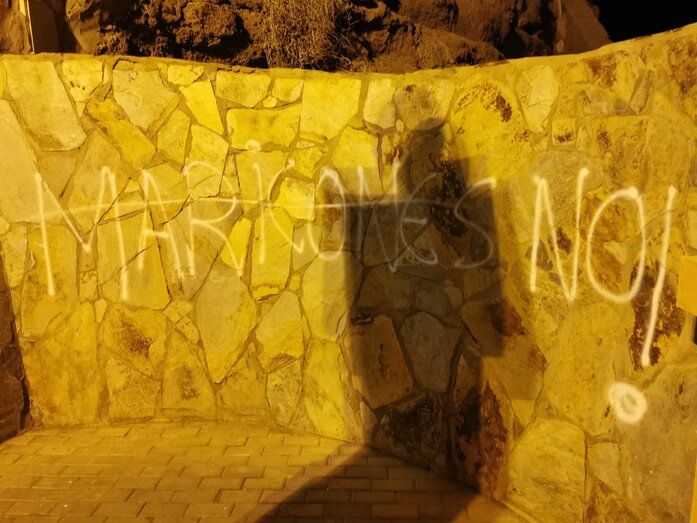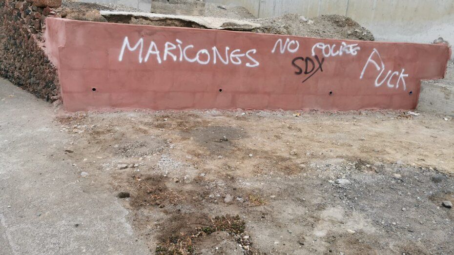Varias pintadas homófobas y en contra de la policía han aparecido en diferentes puntos de la costa de Melenara, en Telde, en los últimos días, tanto en paredes como en bancos de zonas públicas. Ante este hecho, el vicealcalde, Sergio Ramos, ha reaccionado en sus redes sociales asegurando que no va a tolerar estas reaciones, porque no representan a ningún teldense.