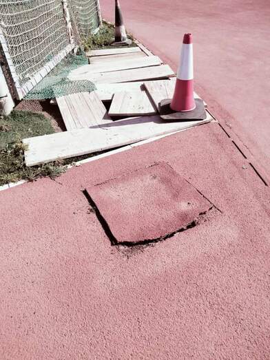 Los padres de los niños y niñas que practican atletismo en las pistas municipales de El Hornillo alzan la voz ante el absoluto abandono que presenta el recinto, con colchonetas totalmente rotas, agujeros en la pista, el foso para saltar con hierbajos y piedras, entre otros muchos desperfectos.