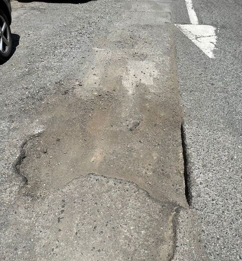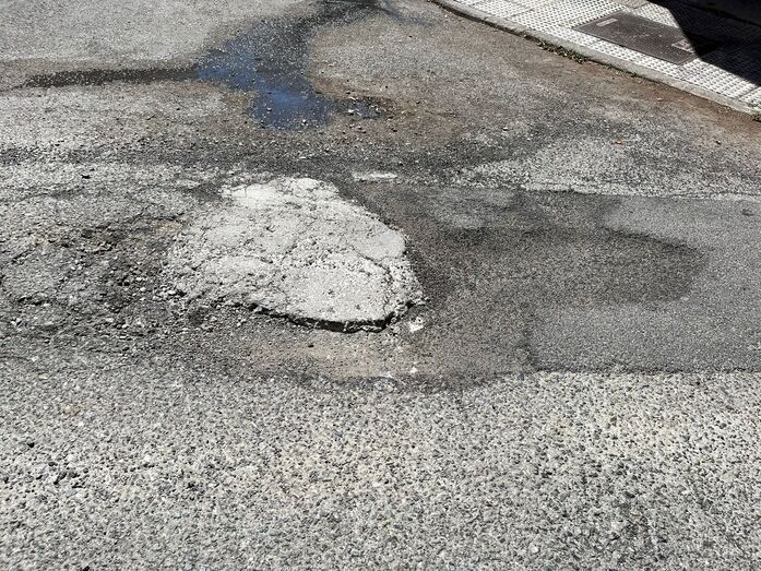 Vecinos de Marpequeña denuncian la multitud de baches que tienen algunas de las calles del barrio, algunos de ellos ya parcheados pero que han vuelto a aparecer.