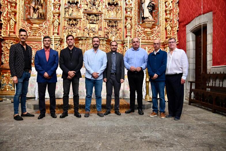 El director general de Cultura y Patrimonio Cultural del Gobierno de Canarias, Miguel Ángel Clavijo, el director insular de Patrimonio Histórico del Cabildo de Gran Canaria, Juan Sebastián López, el alcalde de Telde, Juan Antonio Peña, y el concejal de Patrimonio Cultural del municipio, Juan Martel, visitaron la Basílica Menor de San Juan junto al responsable de la restauración del retablo del altar mayor, Iván Arencibia, de la empresa especializada VallRestauro, para presentar a los medios de comunicación el trabajo realizado.