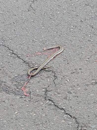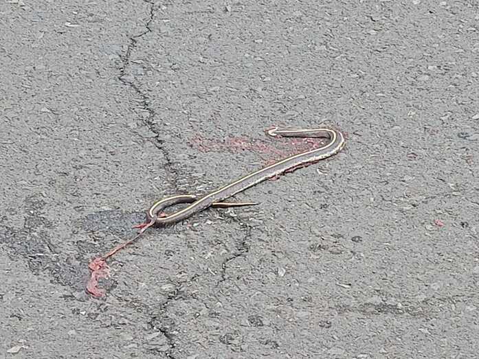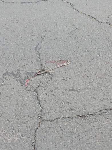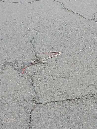 Vecinos de La Pardilla muestran su inquietud por la presencia de una serpiente real de California, especie introducida en la Isla, que ha sido atropellada por un vehículo en la tarde de este jueves en la carretera principal del barrio.