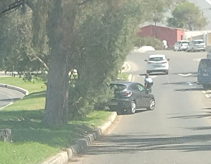 Un coche estacionado sin freno de mano acabó este sábado subido a la mediana de la calle Américo Vespucio, junto a la rotonda de entrada al barrio de Melenara.