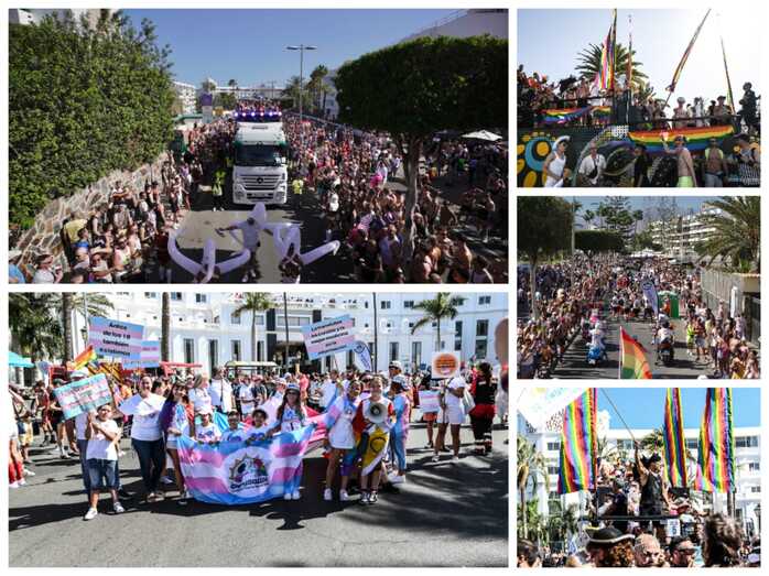 Más de 95.000 personas, según la organización, participaron en el desfile de las 32 carrozas, que inundó de música, baile y diversión las principales avenidas de Playa del Inglés, que se convirtieron en una multitudinaria fiesta para reclamar la libertad, la igualdad y el respeto hacia todas las identidades del colectivo LGTBIQ+. La Policía Local de San Bartolomé de Tirajana estimó que la afluencia superaba las 70.000 personas.