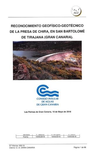 El 'Reconocimiento Geofísico-Geotécnico de la presa de Chira, en San Bartolomé De Tirajana (Gran Canaria)', está firmado en mayo de 2018 por los responsables de la empresa Aplicaciones Geofísicas Insulares, SL, Raúl Mínguez, geólogo, Pilar Medina, Ingeniero de Obras Públicas y Carlos Calvo, geólogo, según el contrato de "Asistencia Técnica” realizado por el Consejo Insular De Aguas De Gran Canaria.