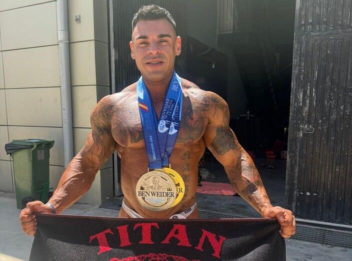 El joven de Las Huesas, que despunta en esta disciplina, es entrenado por Álex González en el Titan Gym Meloneras, donde trabaja. También es asesor nutricional y deportivo y entrenador de atletas.