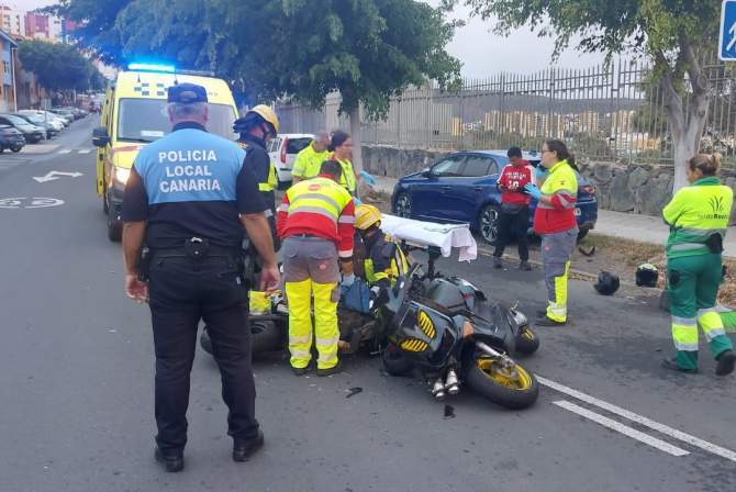 Los conductores de un ciclomotor y una motocicleta han colisionado este viernes por la mañana en la calle Manuel Alemán Álamo, en la intersección con Ídolo de Jinámar, en el barrio de Jinámar, y han resultado heridos leves.