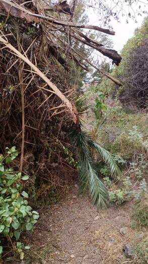 Al no existir señalización de trabajos o de camino cortado, todo indica a que se trata de una poda privada realizada por alguna de las fincas que lindan con el barranco hace ya varios días, suponiendo, además, un peligro para los viandantes por el tipo de poda realizada.