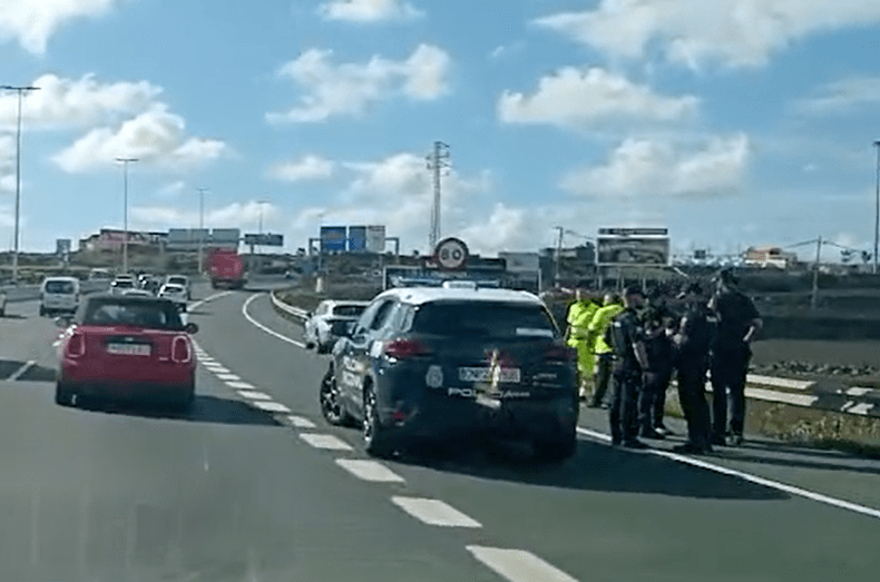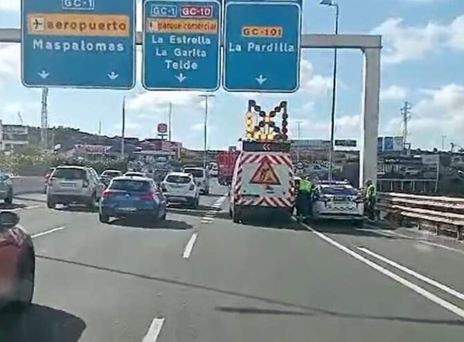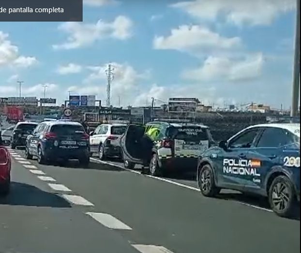 El incidente, que se ha originado poco antes de las 10.00 horas, está provocando retenciones en la autovía debido al importante despliegue de unidades de ambos cuerpos de seguridad, además del Servicio de Carreteras del Cabildo que está señalizando la zona.