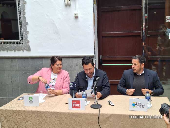 Alejandro Ramos, Celeste López y Héctor Suárez, portavoces de PSOE, NC y el grupo municipal de CC en el Ayuntamiento de Telde, han comparecido hace unos pocos minutos de manera conjunta para analizar la situación actual del Consistorio teldense, con duras críticas al Gobierno local, presidido por Juan Antonio Peña con el apoyo de PP, Más por Telde y Juan Martel (CC), on quienes "la ciudad no va a ningún lado".