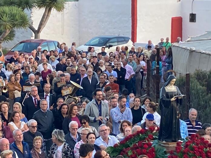 La procesión de Santa Rita de Casia, acompañada por la Banda Municipal de Música de Telde y el coro Ibaradem, se celebró tras la misa solemne de las 19.00 horas. Los feligreses y vecinos, que abarrotaban el recinto eclesiástico se unieron en una emotiva celebración que recorrió el entorno más cercano al templo, manifestando su devoción y respeto hacia la patrona. Por parte del Ayuntamiento de Telde asistieron el alcalde Juan Antonio Peña; el vicealcalde Sergio Ramos y varios ediles.