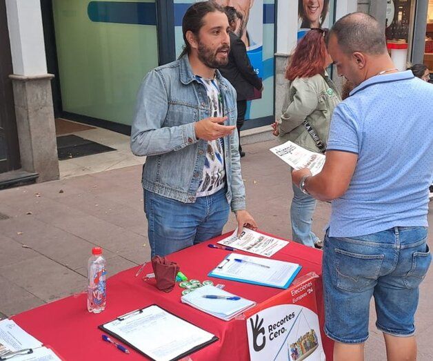 El movimiento político Recortes Cero instaló este miércoles en Los Llanos de Telde una mesa informativa, ubicada en la Avenida de la Constitución, frente al antiguo café Buenaventura, con el objetivo de acercar sus propuestas y alternativas a la ciudadanía para las próximas elecciones europeas.