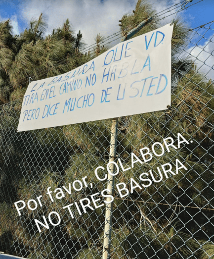 La plataforma vecinal San Roque en lucha continúa adelante con la campaña de sensibilización, apelando a la colaboración vecinal y de los usuarios de las vías GC-810 y GC-41, que dan acceso al municipio de Valsequillo por el Valle de San Roque y Montaña de Las Palmas, para mantener limpias estas carreteras.