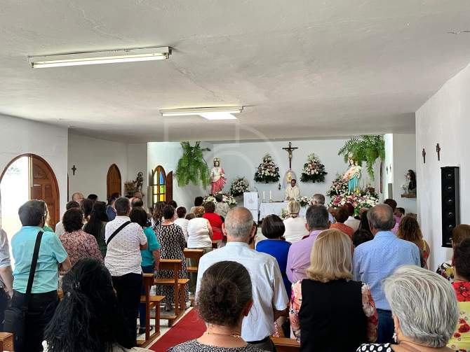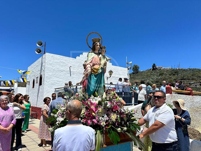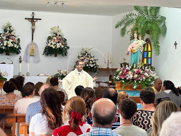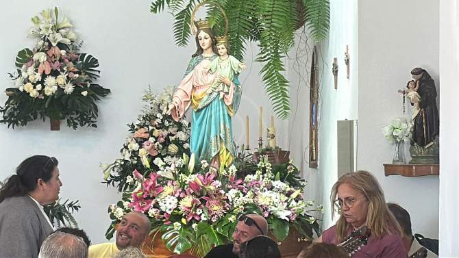 Los tronos de María Auxiliadora y del Corazón de Jesús procesionaron este mediodía por el barrio teldense de La Gavia después de la misa oficiada en la ermita por el párroco Antonio Juan López, titular de la Basílica de San Juan, con motivo de las fiestas patronales en honor de María Auxiliadora.