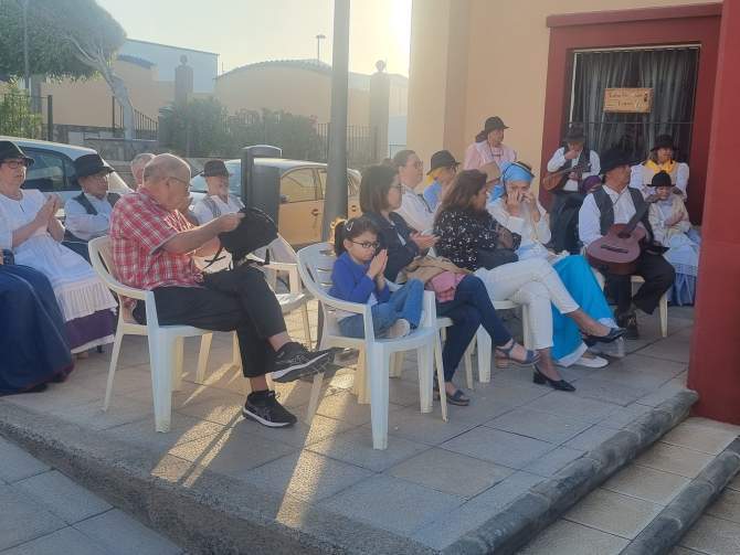 Después de las actuaciones, se celebró un enyesque popular, donde cada vecino aportó algo para compartir y continuar el parrandeo entre los asistentes, creando un ambiente de comunidad y celebración en honor del Día de Canarias.
