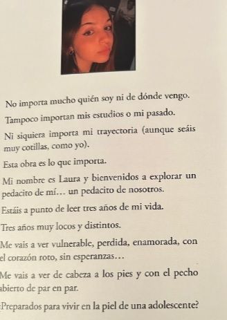 “La adolescencia no es un camino de rosas como todos creen. La salud mental cada vez entra más en decadencia en los jóvenes y no pasa nada por expresar que lo estamos pasando mal o que estamos viviendo el mejor momento de nuestra vida, pues parece que hoy en día demostrar lo que sientes es de débiles, cuando en realidad es la mayor muestra de valentía que puedes tener”, añade Laura Amavizca.