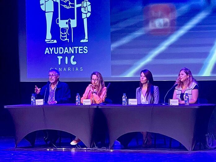 La consejera de Política Social, Accesibilidad, Igualdad y Diversidad del Cabildo de Gran Canaria, Isabel Mena, y la consejera de Educación y Juventud, Olaia Morán, han asistido este lunes al VIII Evento de Ayudantes TIC organizado por la Fundación Canaria Yrichen en el Teatro Municipal Juan Ramón Jiménez de Telde.