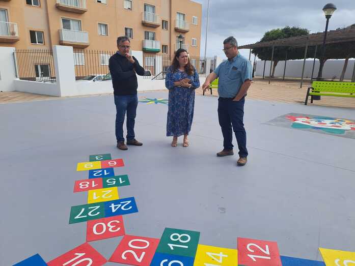 Artiles explica que “la zona ha quedado dotada de elementos lúdicos, pero también educativos, contando con juegos de suelo con termoplásticos que combinan el ejercicio físico y el desarrollo cognitivo de los menores.