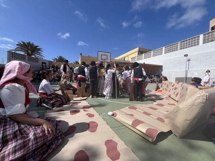 Durante la jornada, los estudiantes, ataviados con la ropa típica, recrearon antiguos oficios, además de diferentes fiestas populares que se realizan en las islas, entre ellas la de los enanos de La Palma.