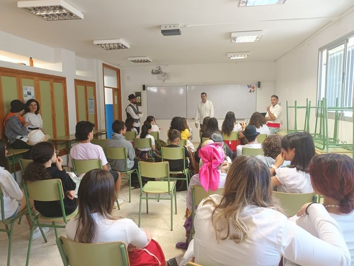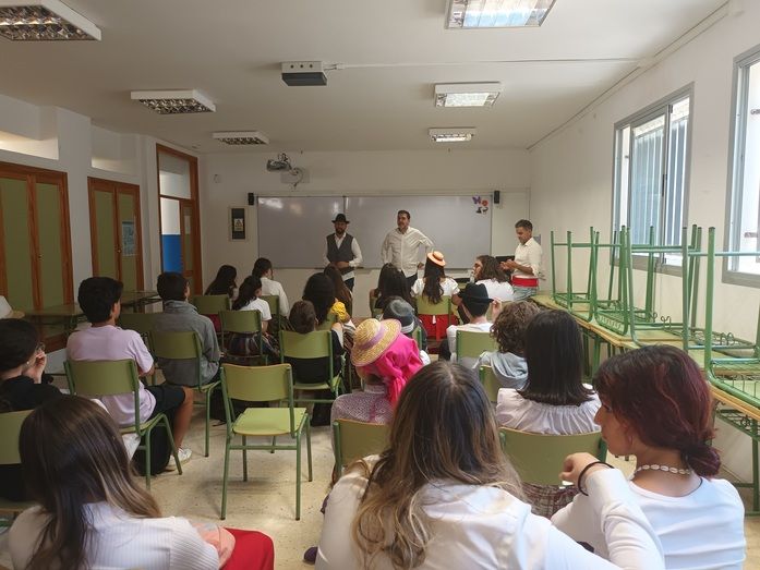 El IES Santa Lucía acogió este miércoles un homenaje al exportador teldense Carmelo Santana Peña, fallecido el pasado mes de abril, durante un acto enmarcado en unas jornadas dedicadas a la zafra que impulsó este centro educativo con motivo del Día de Canarias.