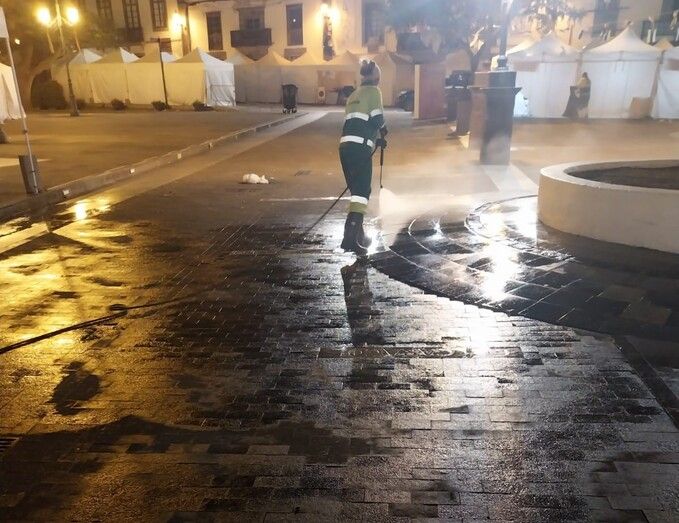 El operativo de limpieza se organizó para asegurar que el espacio público mantuviera las condiciones óptimas de salubridad e higiene, especialmente considerando las próximas actividades programadas para este jueves por la Concejalía de Cultura con motivo del Día de Canarias.