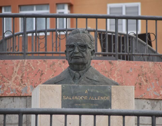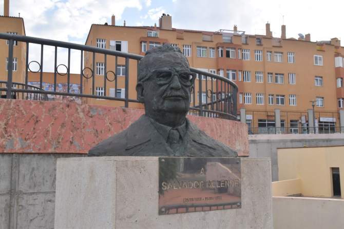 La escultora madrileña Eva Montoro Pericás, ha realizado en bronce con la técnica de fundición, un busto de unos 80 kilos de peso en homenaje a Salvador Allende, obra que también se puede admirar en la capital de España, concretamente en la Plaza de la Inmaculada en Leganés, donde se halla una obra de la misma autora. Se trata de una obra figurativa, en la que muestra al homenajeado caracterizado por una imagen de profunda reflexión; con un rostro curtido por el bagaje y la experiencia acumulada a lo largo de los años. Porta sus características gafas y un bigote, aparte de llevar chaqueta, camisa y corbata en alusión al cargo que ostentó. El tratamiento de la superficie sigue la línea típica de esta artista madrileña en la que se combina el gusto por las superficies rugosas y el juego de luces y sombras, lo que ayudan a envolver a sus personajes en una orla de misterio que los dignifica.