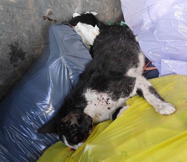 Yaiza, miembro de este colectivo, relata que esta mañana encontró a uno de los gatos de la colonia fallecido por un atropello mortal dentro de un contenedor. Explica que fue un vecino que paseaba con su perro quien lo vio en el recipiente y le avisó.