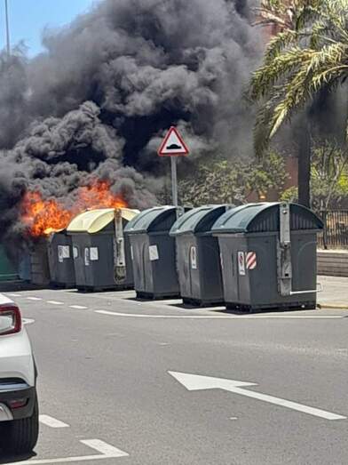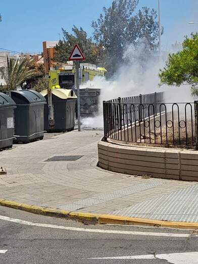 Los bomberos del Consorcio de Emergencias de Gran Canaria han tenido que actuar este lunes para sofocar un incendio en el barrio teldense de Las Remudas y que ha afectado a varios contenedores de basura. El fuego se originó en la Avenida de La Paz a la altura de la calle Alejo Carpentier.