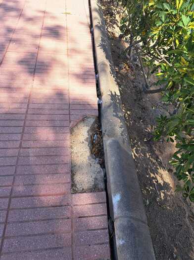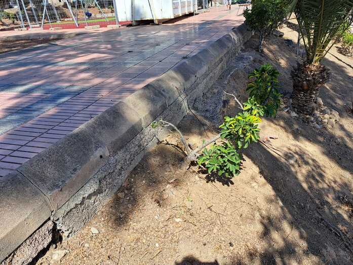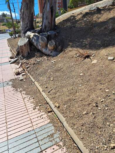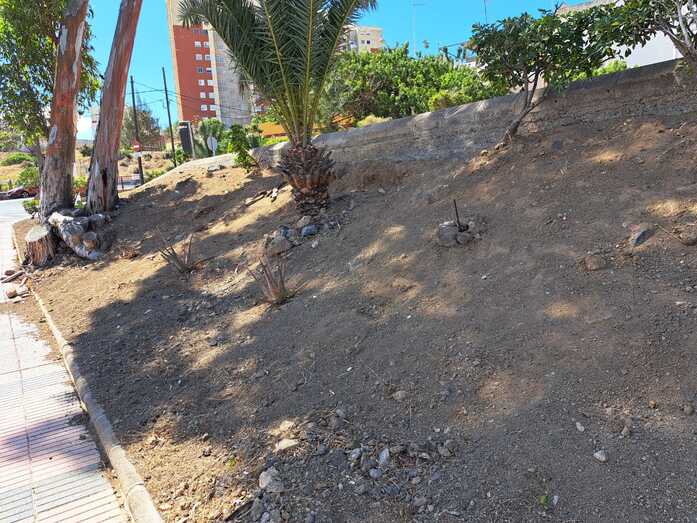 Los vecinos del Cascajo de Jinámar se quejan del abandono de la entrada de Correos por falta de riego y de plantas provocando la erosión del talud, lo que genera grietas en la acera y tierra que cae en ellas.