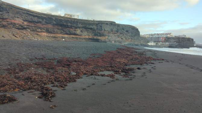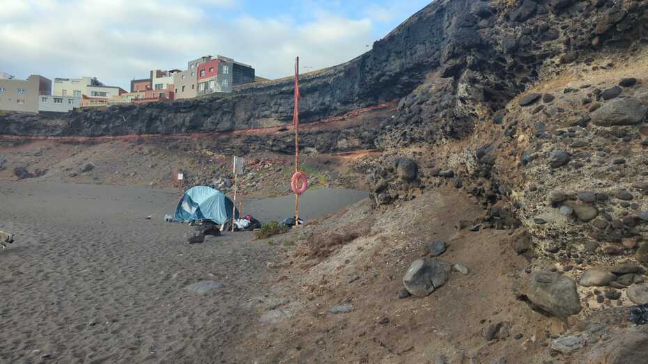 Usuarios de la playa de San Borondón critican la imagen que presenta esta cala de Telde ubicada en la zona de La Garita. Advierten de personas, a los que califican como okupas, que han acampado sobre la arena con casetas y maletas. Además, también alertan de algas podridas.