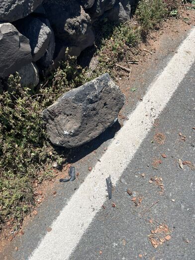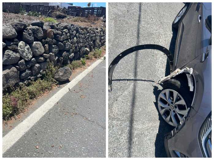 La piedra, de importantes dimensiones, cayó en el momento que pasaba el coche y el conductor no pudo hacer nada para evitarla, por lo que le ha dañado una de las ruedas y parte de la carrocería.